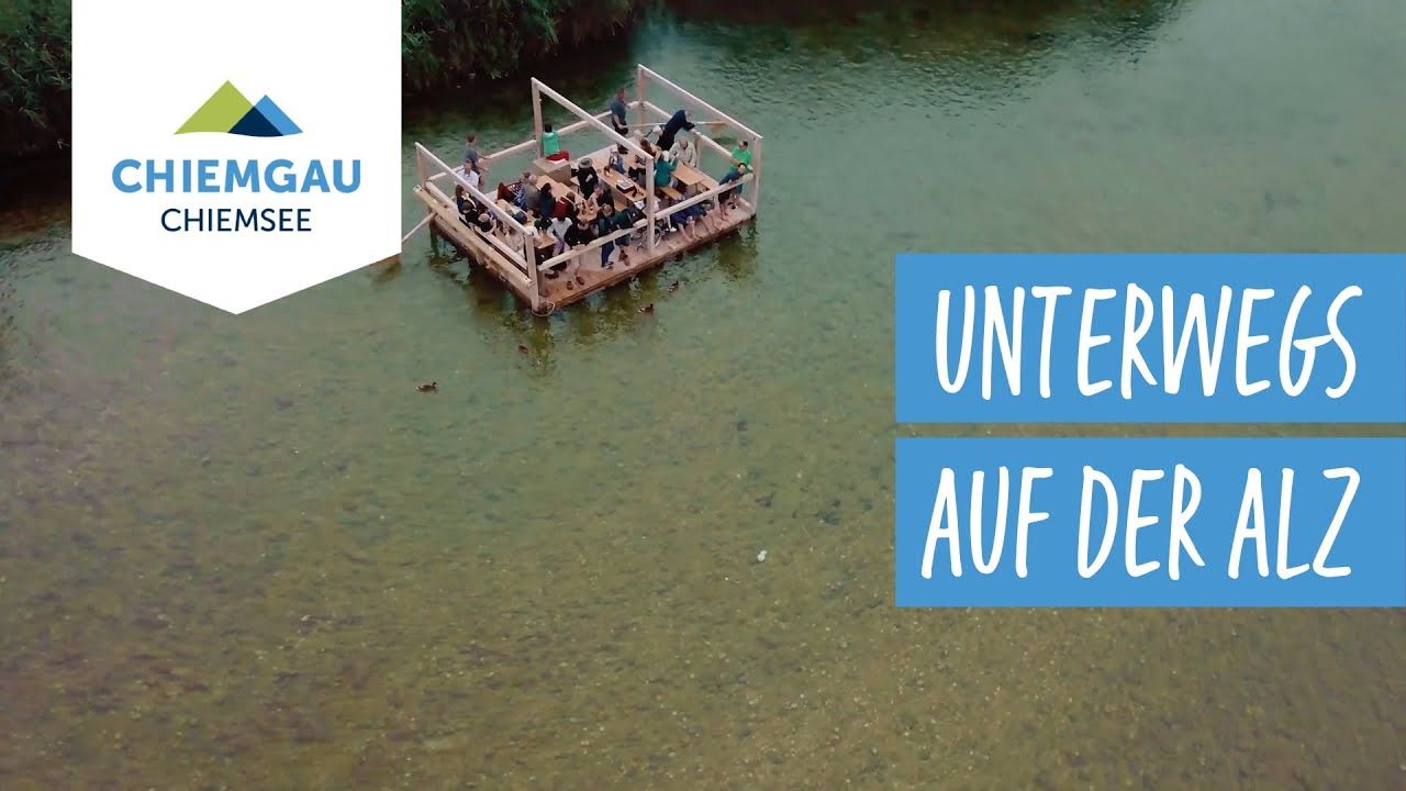 Flink hieven sie Balken vom Traktor, schrauben diese zusammen und verknoten Seile. Mit geschickten Handgriffen bauen die Flößer der Alz Floßfahrt den schwimmenden Untersatz in Windeseile, aber gleichzeitig völlig stressbefreit zusammen. Kaum zu glauben, dass ein Floß von so beachtlichen Dimensionen, auf dem eine Gruppe von bis zu 30 Personen Platz findet, in zehn Minuten steht. Doch die Männer machen das offensichtlich nicht zum ersten Mal. Zweimal täglich befördern sie ihre Passagiere von Seebruck nach Truchtlaching. Nun noch ein paar Bierbänke und -tische darauf und schon kann es losgehen: Von Familien mit Kindern bis hin zu einer Männerrunde, die eine „Firmenfeier zu Fluss“ abhält, steigen die unterschiedlichsten Gruppen aufs Ausflugsfloß – allen gemein sind die gute Laune und offensichtliche Vorfreude auf den entschleunigten Trip auf der Alz.