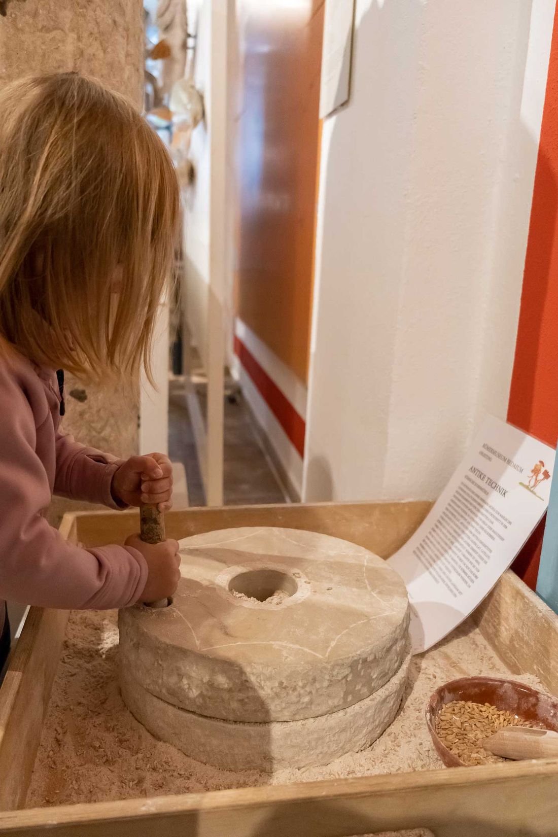 Das Römermuseum Bedaium beherbergt eine große Sammlung an Fundstücken aus der Zeit der Römer in Seebruck und auch heute noch werden in der Ortschaft archäologische Funde gemacht. Thematisch sortiert sind diese in verschiedenen Glaskästen auf zwei Stockwerken ausgestellt, mit einer ganzen Menge Informationen in Form von schriftlichen Tafeln und Schildern dazu. Das klingt für Kinder langweilig? Ist es natürlich auch. Und genau deshalb haben wir Quintus Tiberius Octavius an unserer Seite.