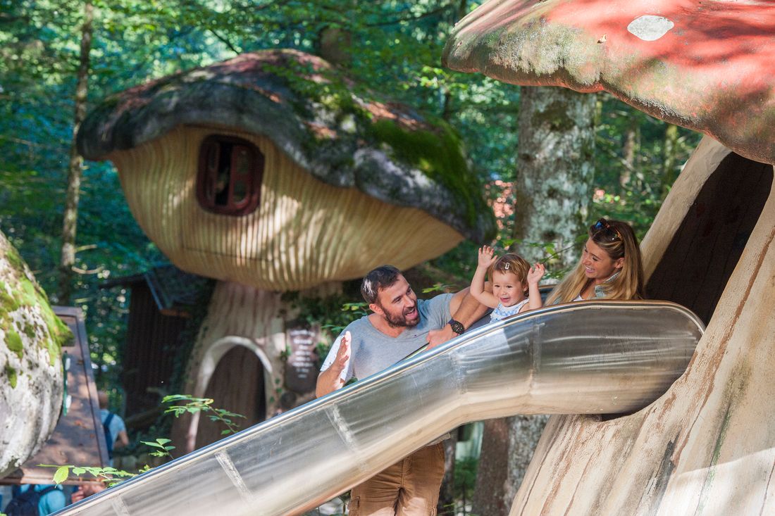 The leisure park in Ruhpolding hasbeen attracting all generations with fairytale-like and exciting experiences for 50 years. After entering the park through the castle gate, you are immediately immersed in a world full of adventure. The mountain roller coaster takes you through the mountain forest or a balancing act through the low ropes course for young and old. Incidentally, you are never too old to visit the leisure park in Ruhpolding. The little ones can compete with their grandparents in a biathlon duel or mice hunt, for example, while mom and dad reminisce about their own childhood days. Hungry adventurers will find refreshment in the “Tischlein Deck Dich” tavern .