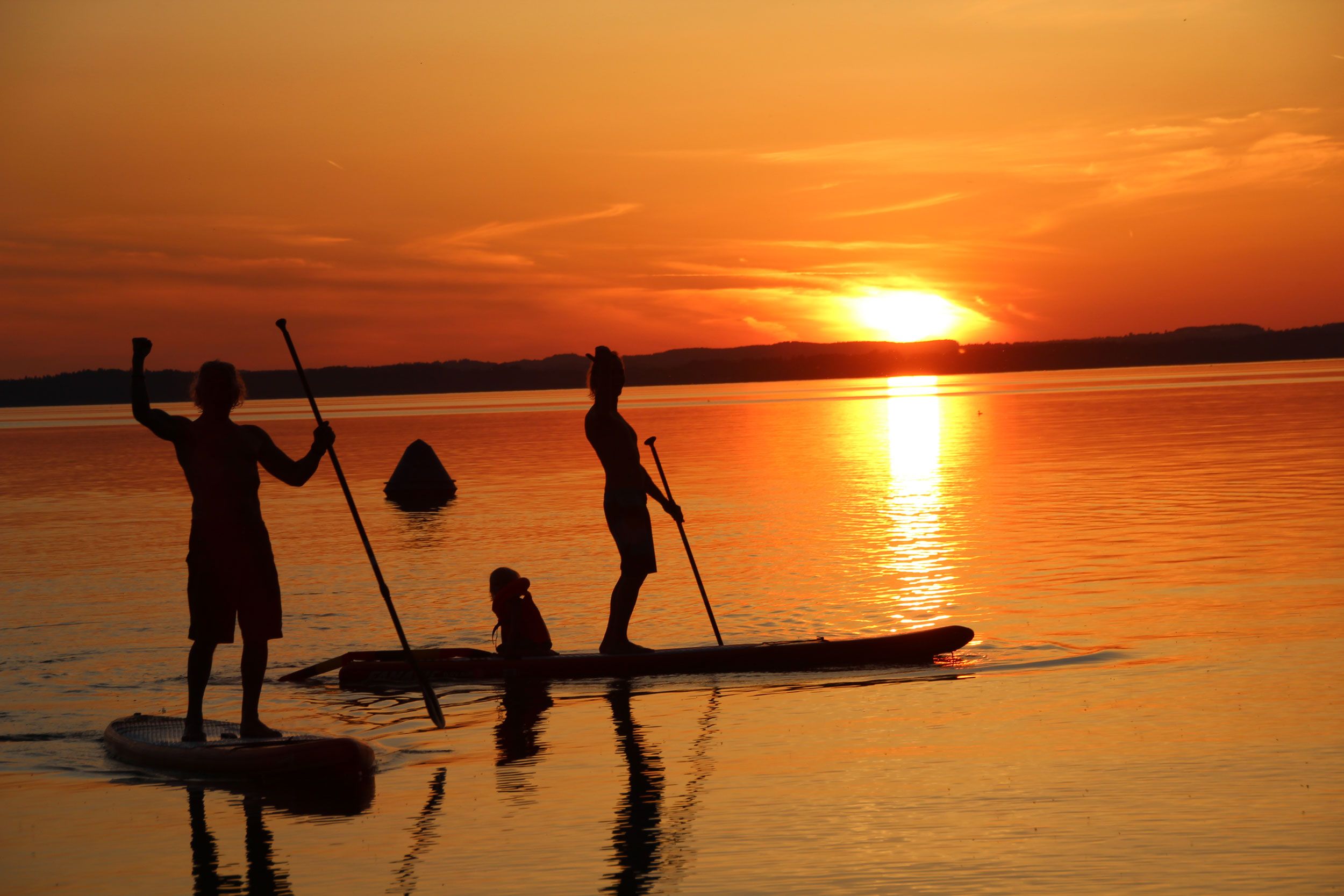 Next to the jetty , the lido on land offers table tennis tables and a volleyball court to really work out. Anyone who has always wanted to try SUP but hasn’t gotten around to it yet has the best opportunity here. The in-house SUP rental shows you the basics on the quiet Chiemsee.