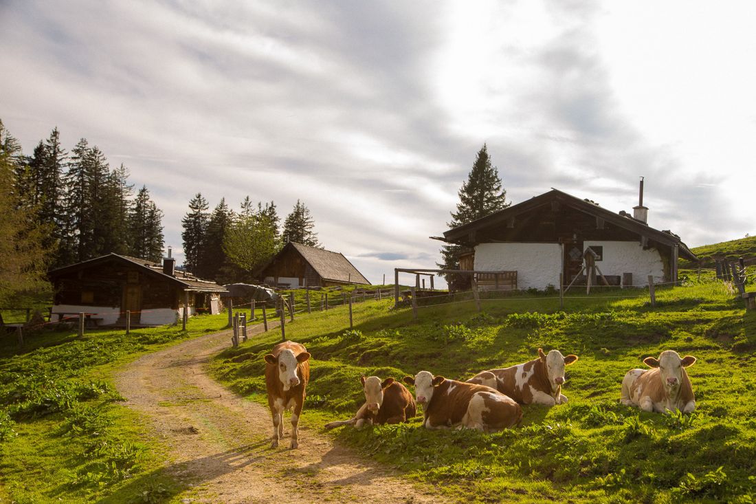 Südlich vom Hochfelln, auf 1.325 Metern, lichtet sich der Wald und gibt den Blick frei auf eine bayerische Bilderbuchidylle: Das Gebiet der Haaralmen.