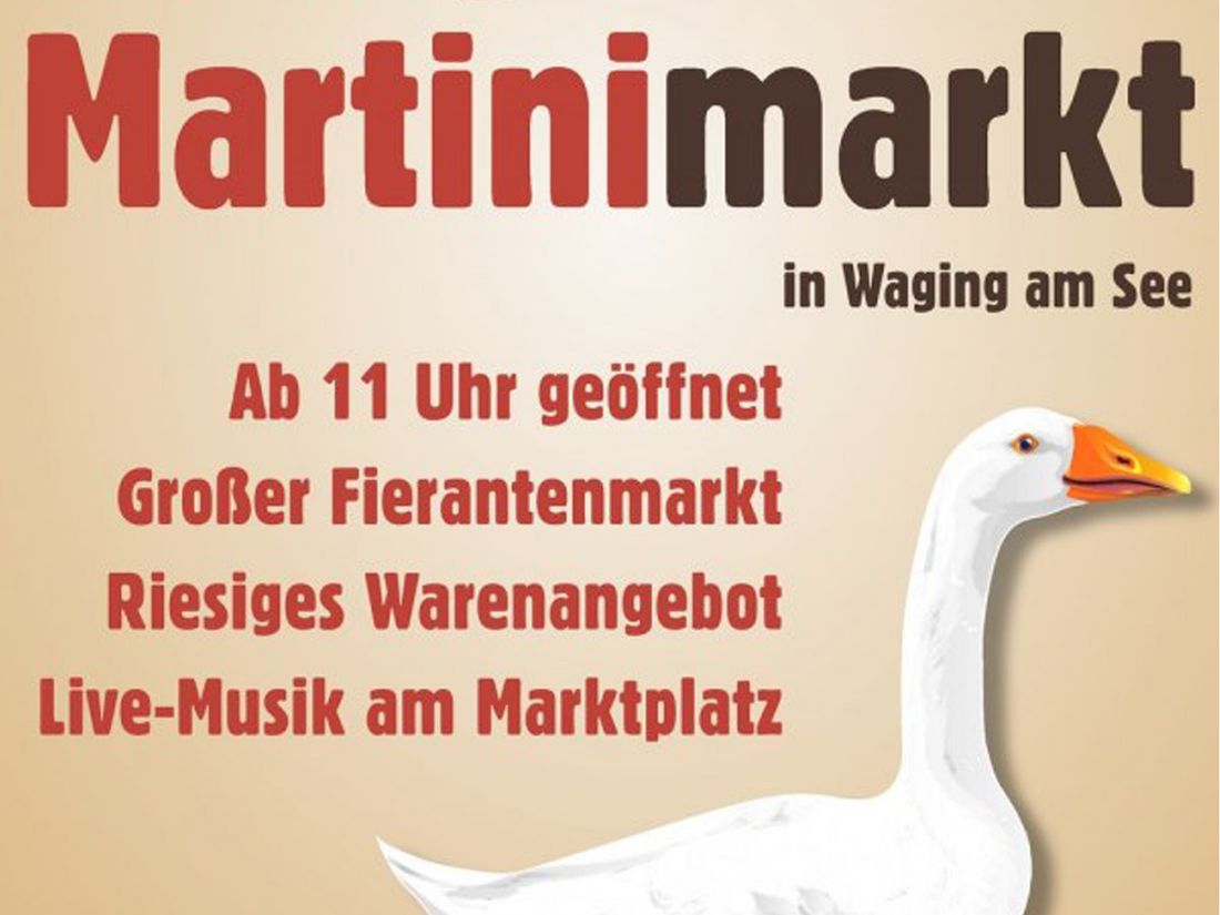 Wir freuen uns auf den traditionellen Martinimarkt mit zahlreichen Fierantenständen im Ortskern von Waging am See. Die vielseitige Gastronomie und der gut sortierte Fachhandel, präsentieren sich an diesem bekannten Waginger Novembermarkt von ihrer Schokoladenseite. Die Fachgeschäfte haben von 11 bis 17 Uhr und die Marktstände bereits ab dem frühen Morgen für Sie geöffnet.