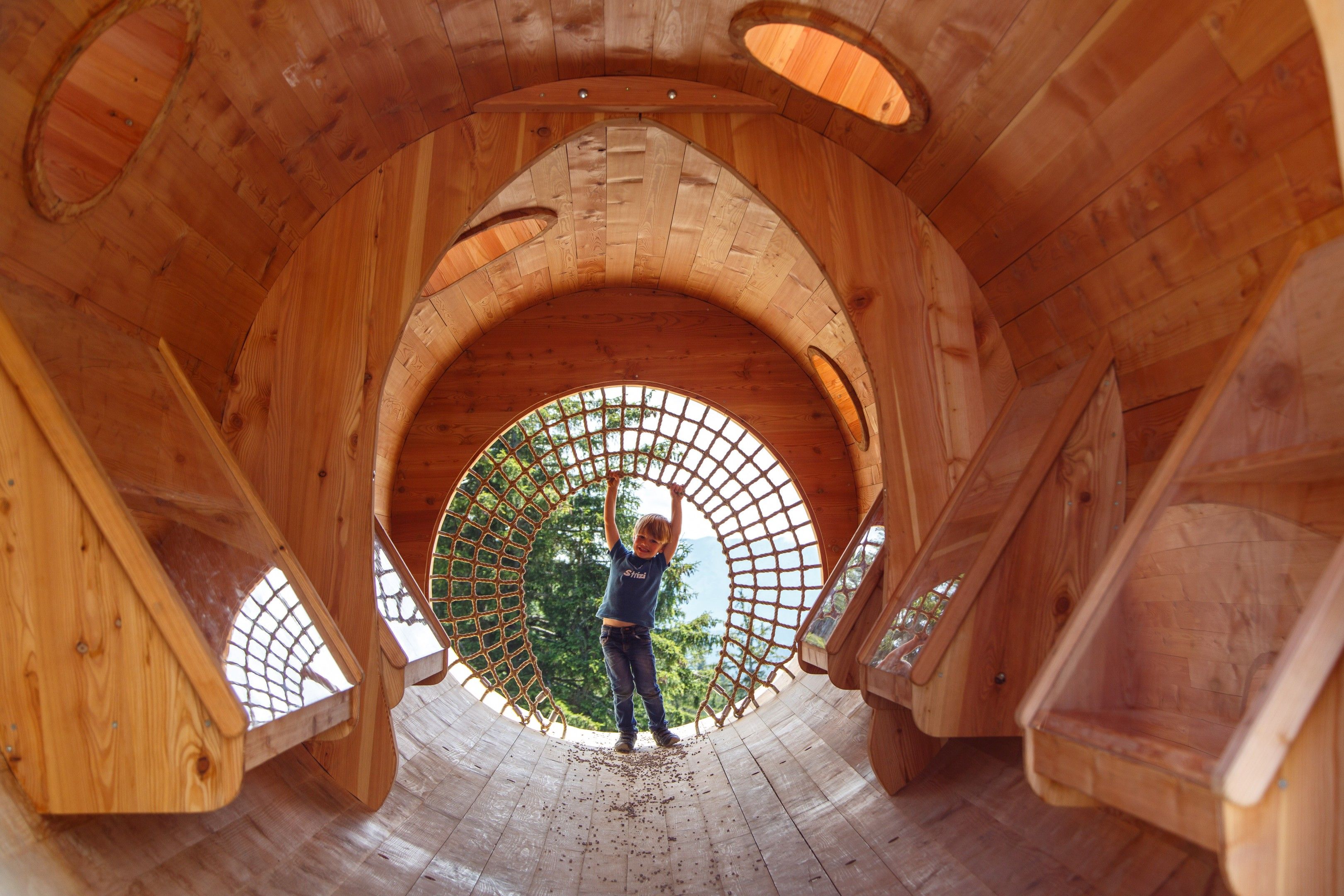 Kunst am Berg, Holzgeister und ein Panorama mit über 600 Gipfeln.