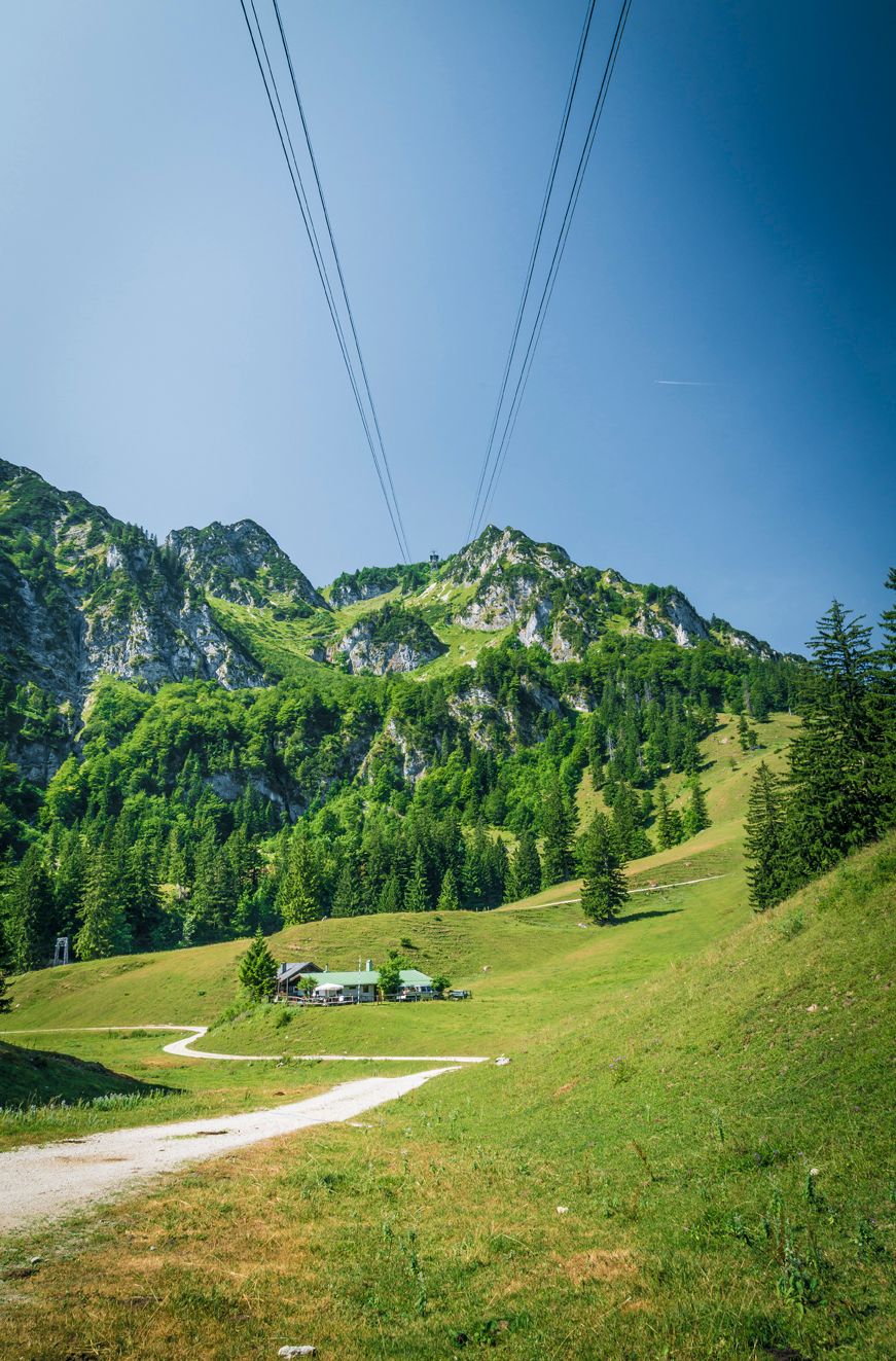 Die 4. Etappe des Salzalpensteiges von der Bergstation der Hochfelln-Seilbahn in Bergen nach Ruhpolding hat ihren Startpunkt am 1664 Meter hohen Hochfelln-Gipfel. Zuerst fahren Sie mit der Seilbahn von Bergen aus auf die Spitze des Hochfelln. Auf dieser ca. 20 minütigen Fahrt in einer großen Gondel bekommen wir schon einen kleinen Vorgeschmack auf das, was uns auf dieser Wanderung erwartet: Eine wunderschöne Aussicht auf das umliegende Land.